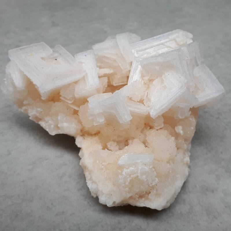 De kristallen op zich zijn microscopisch klein en niet te zien met het blote oog. Veel kristallen trekken elkaar echter aan en klitten aan elkaar vast, waardoor zij groeien en er zogenaamde macrokristallen ontstaan. Het leuke is, dat deze macrokristallen vaak dezelfde vorm hebben als de microscopisch kleine kristalletjes waaruit ze opgebouwd zijn.