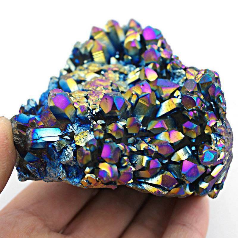 Zeer populair is op het ogenblik het kleurrijke ‘aurakwarts’ of ‘titaniumkwarts’. Dit is echter geen natuurprodukt, maar ‘gewone’ kwarts waarover men een laagje titanium heeft verdampt.