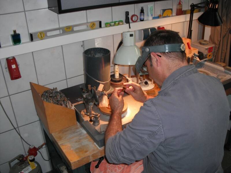Afb. 59: Een slijper in actie in zijn werkplaats.
