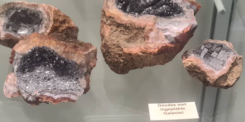 Afb. 82: 'Geodes met ingeplakte galeniet' in het Gelders Geologisch Museum.