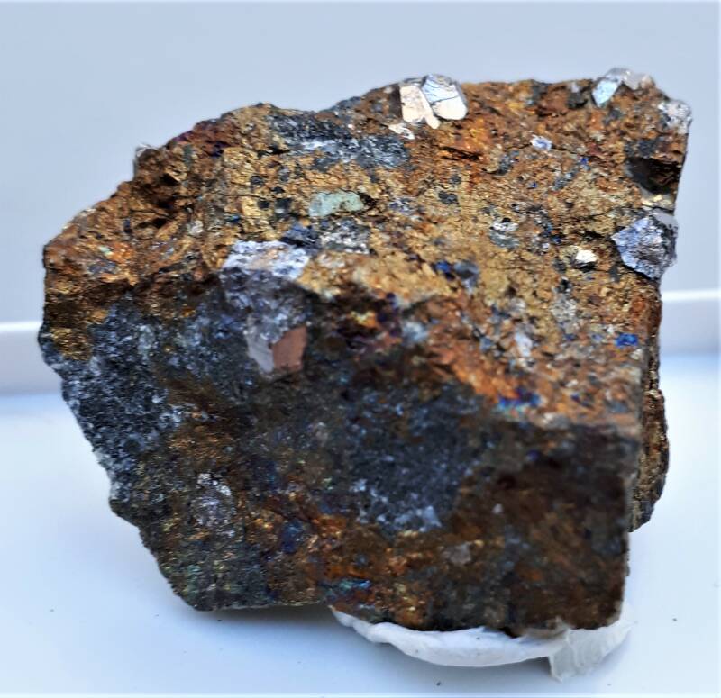 Ook het kleurrijke borniet (Cu5FeS4; ook wel ‘pauwenerts’ genaamd) hoort bij deze groep. Door oxidatie gaat dit mineraal iriseren. Een verschijnsel, dat zich door mij niet goed op een foto laat vastleggen.