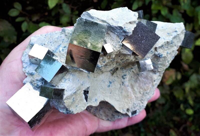 Tenslotte wil ik je het volgende plaatje niet onthouden. Het is dan wel geen pyriet, maar wordt verkocht als chalcopyriet. Als je dit ziet is het niet verwonderlijk als je denk dat het hier om goud gaat.