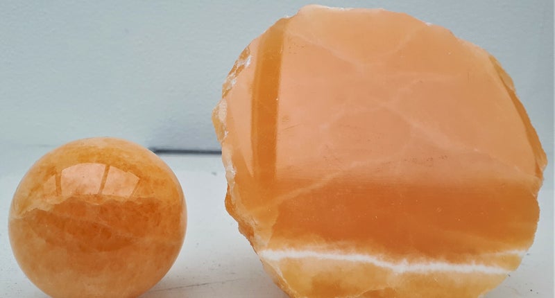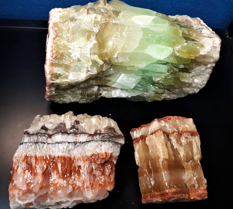 Afb. 3 (links): 2 geslepen stukken 'honing'-calciet.