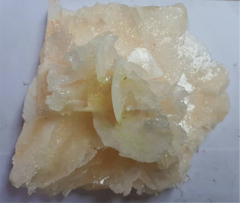 Op Marktplaats kocht ik het stuk hieronder, volgens de verkoper ‘zeldzaam hexagonaal calciet’. Nu bestaat hexagonaal calciet niet, maar wel de polymorf vateriet, hetgeen calciumcarbonaat is met een hexagonaal kristalstelsel.