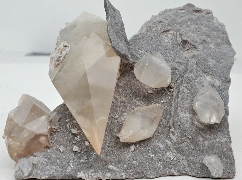 Afb. 1: Deze calciet-kristallen (op matrix) lijken wel diamanten.