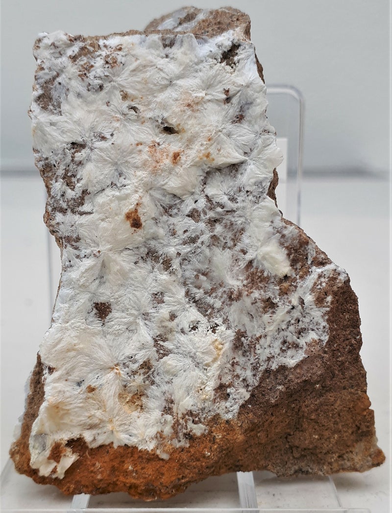 Afb. 2: Witte dawsoniet met bruine dolomiet op matrix uit Tsjechië.