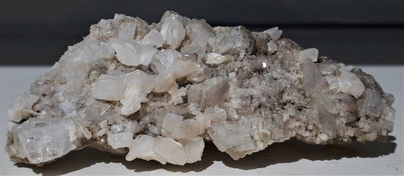 Afb. 2: Een leuk geschenk van een verkoper: witte adularia-kristallen op matrix. Afkomstig van de Splügenpas op de grens van Italië en Zwitserland.