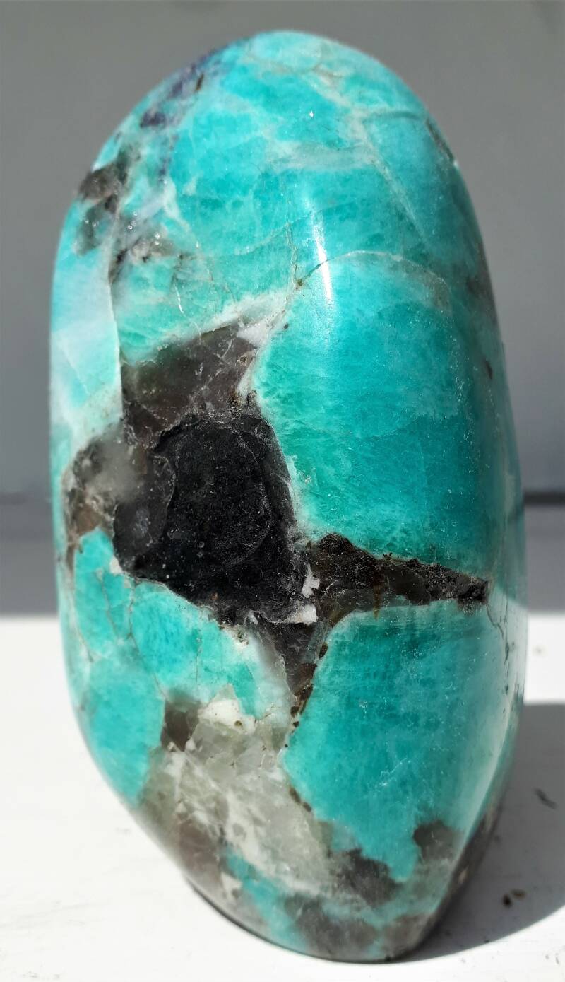 Amazoniet is een groen-blauwe variëteit van microklien. De kleur zou een gevolg zijn van de aanwezigheid van loodoxide (PbO). Hoewel er ook aanwijzingen zijn, dat deze veroorzaakt wordt door tweewaardig ijzer (Fe2+). Bron: Mindat.org.