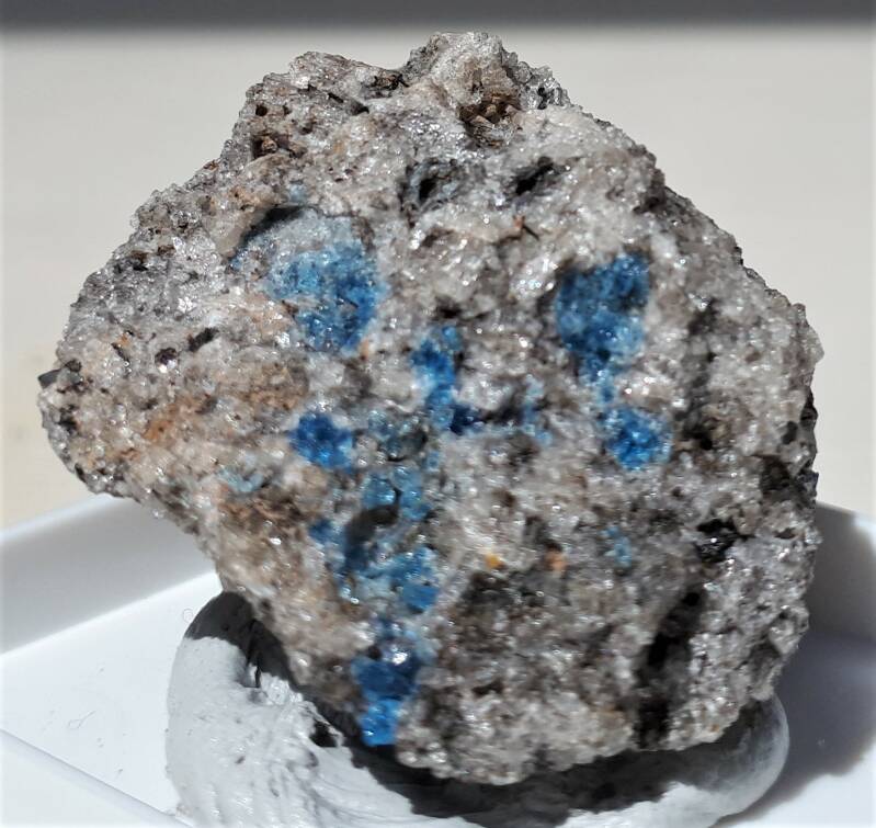 Afb. 11: Blauwe haüyn-kristallen op matrix uit Duitsland.