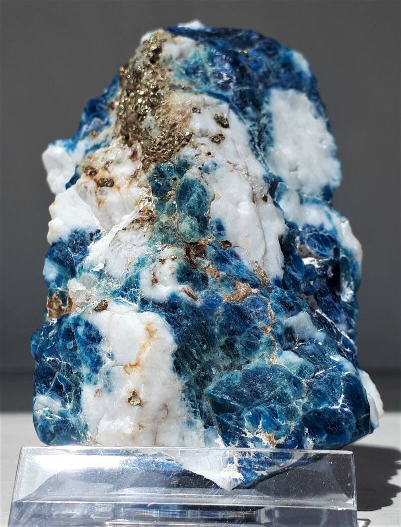 Haüyn is zeldzaam en duur. En daarom was ik verbaasd om op een veiling het hiernaast afgebeelde stuk van 130 gram te kunnen kopen voor een bijzonder aangename prijs.