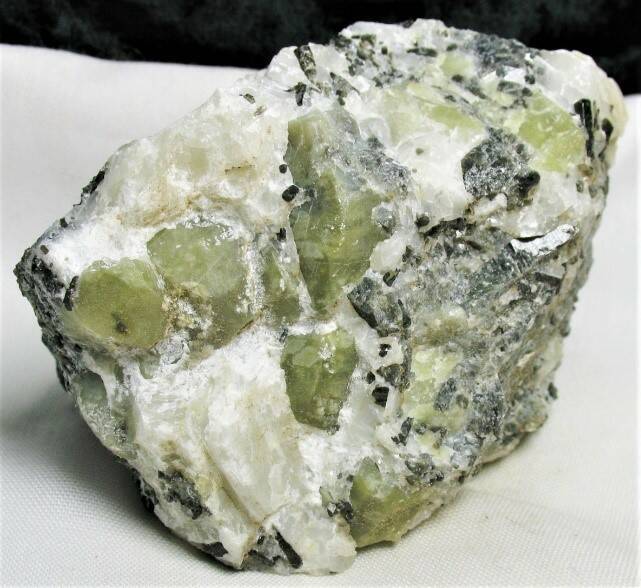 Afb. 20 (rechts): Geelgroene meioniet-kristallen op matrix uit Finland.