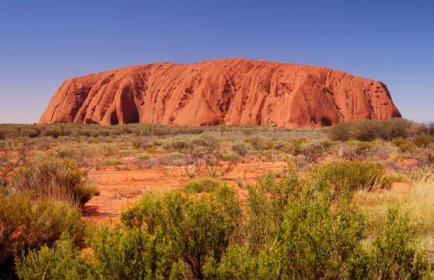 De heuvel steekt op een markante manier boven het vlakke landschap uit, die mij doet denken aan Uluru, alias Ayers Rock, in Australië.