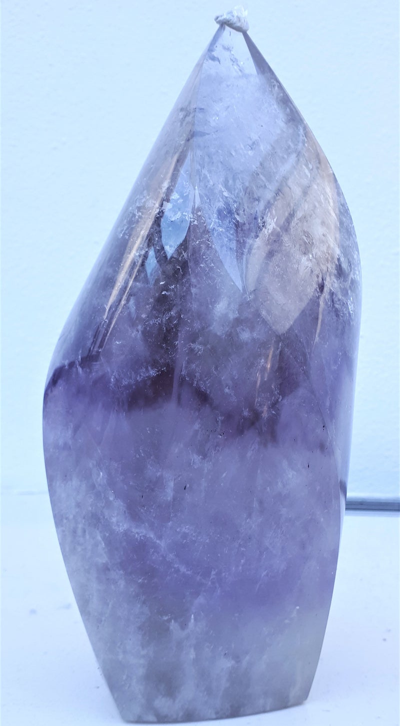 Afb. 12: Ik heb mijn vrouw moeten beloven dat dit de laatste is. Ze heeft gelijk, 3 forse obelisken (deze is 33 cm en 5,3 kg) van amethist zijn wel genoeg. Net als de andere 2 afkomstig uit Brazilië. Zie ook 3.01.