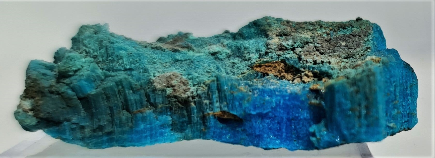 Afb. 18: Natuurlijke (hoop ik) chalcanthiet op matrix uit Polen. In dat land wordt ook veel man-made chalcanthiet geproduceerd.