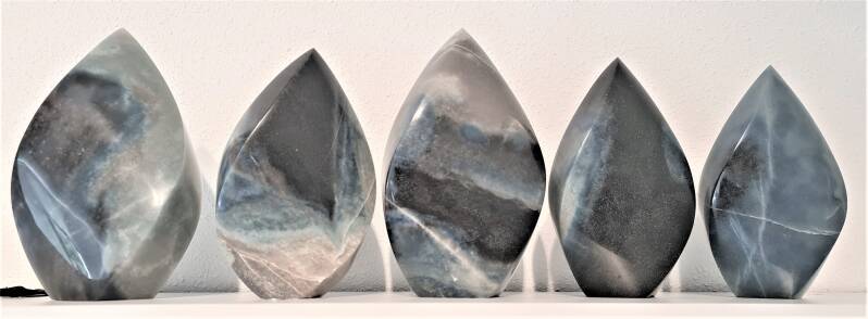 Afb. 7: Maar liefst 5 vlammen van paraiba-kwarts. En dan heeft mijn vrouw er ook nog 2 weggegeven.