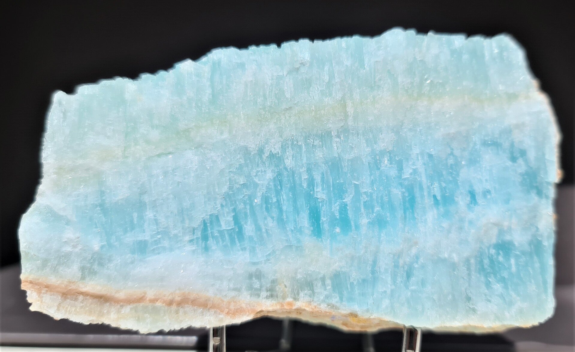In 2.18 kwamen we ook al een stukje serpieriet (Ca(Cu,Zn)4(SO4)2(OH)6 · 3H2O) op matrix tegen. Hier wordt het vergezeld van zincowoodwardiet (voor de liefhebbers: Zn1-xAlx(OH)2[SO4]x/2 · nH2O). Wat een prachtige kleuren toch weer.