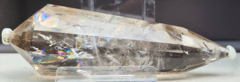 Afb. 8 (links): Een Phi Vogel geslepen stuk bergkristal en/of rookkwarts. Zie ook de kleurtjes, die door deze slijpwijze ontstaan.