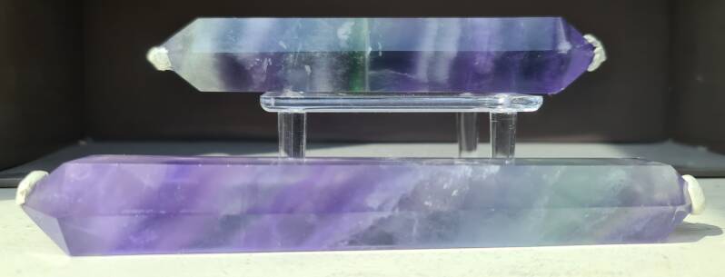 Afb. 12 (onder): Deze dubbeleinders van fluoriet zijn ook afkomstig uit China.