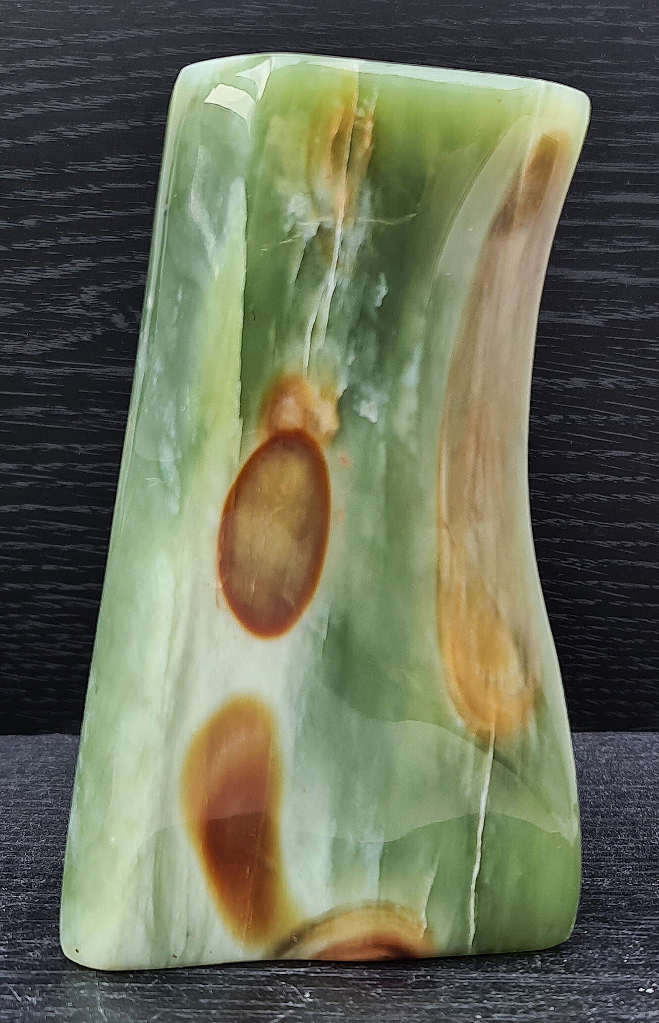 Afb. 15: Verkocht als 'jade-serpentijn'. Zoals in 2.23 is beschreven, wordt serpentijn, een relatief zacht materiaal, vaak verkocht als jade, dat veel harder is. Dat doet overigens niets af aan de schoonheid van het hierboven getoonde stuk, dat 1,7 kg zwaar is en afkomstig uit Afghanistan.